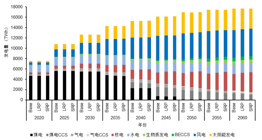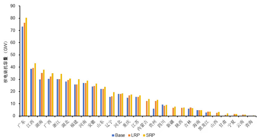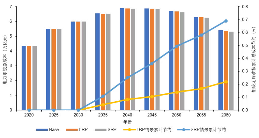 (注:Base—无煤改核;LRP、SRP—逐步推进煤改核)