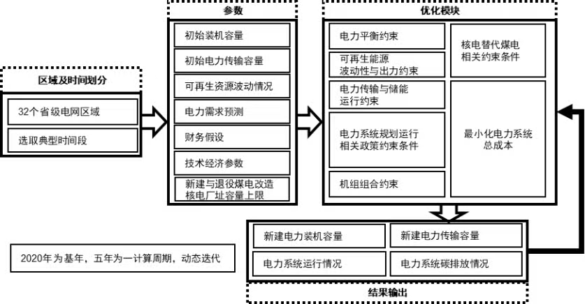 图1 考虑核电替代煤电的电力系统规划运行模型框架