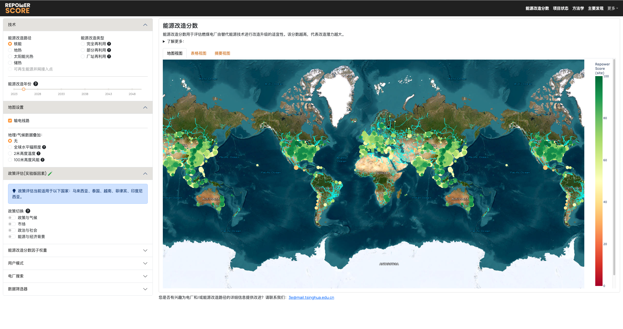 RepowerScore中文版由清华大学能源环境经济研究所与Repower Initiative联合开发,服务于燃煤电厂清洁再利用及相关前沿议题(如“煤改核”、煤电厂址再利用等)的研究与实践。RepowerScore中文版的发布旨在促进学术讨论与知识共享,并致力于构建一个国际交流窗口,推动中外在能源转型领域的交流与合作。